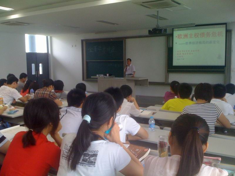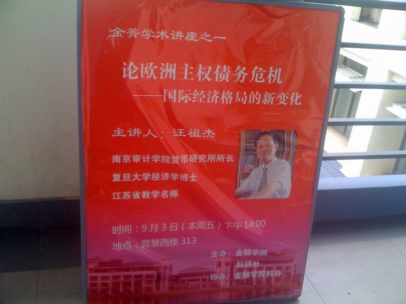 2010 年9月3日,由司机会所 科研处主办,科协协办的金菁学术讲座在竞慧西楼313教室热烈举行。此次讲座由复旦大学经济学博士,江苏省教学名师,金融院汪祖杰教授主讲。