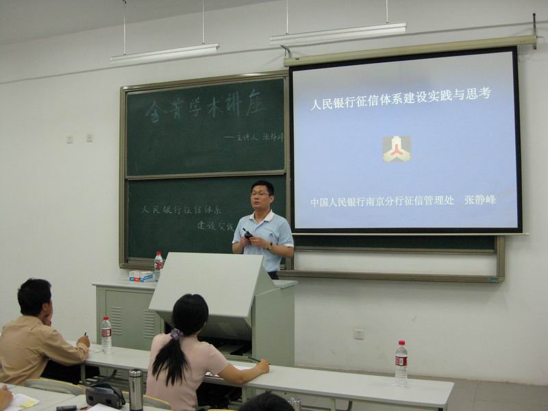 征信是一个什么样的行业?信用管理行业的过去,现状,未来的发展如何?人民银行在推动征信发展方面做出了哪些贡献?为此来自中国人民银行南京分行征信管理处的张静峰处长为我校信用管理专业的同学做了了一个“人民银行征信体系建设实践与思考”的专题讲座。