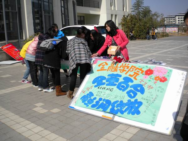 2011年3月7日中午,司机会所 女生部在泽园食堂门口举行了“金莹百合,融润绽放”的大型签名送祝福赠鲜花的活动,欢庆女生节,本次活动分为两个部分,第一部分,签名送祝福;第二部分,抽签赢花束。