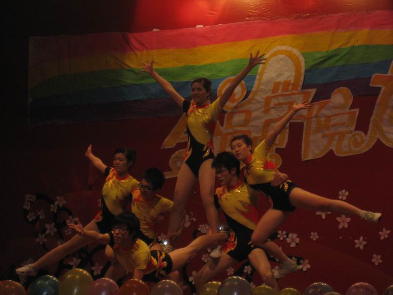 乐队表演,以其精彩的演出就把晚会的气氛带到了高潮;女生舞蹈《重逢的世界》仿佛展开一幅动感画卷,领略到巾帼不让须眉的霸气;朗诵《青春之歌》,青春正如一首美丽的歌,令人陶醉,又如高山流水,倾泻出灵动的音符;跳跃,动感的音符,带着那喷薄而出激情是健美操的队员。英语剧《飘》、女生街舞、双截棍等同样展现了他们的精彩,将晚会现场带入一个又一个的高潮。
