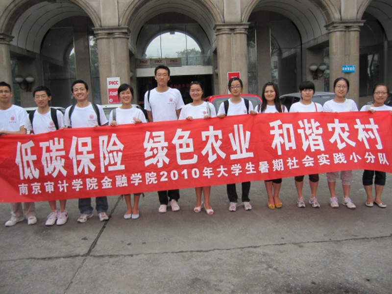 2010年大学生暑期社会实践保险小分队在镇江市保险学会刘秘书长、指导老师刘玉焕和黄健的带领下继续开展实践活动。