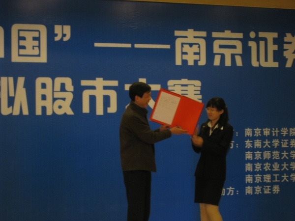 此次模拟股市大赛由我校证券投资俱乐部主办,东南大学、南京师范大学、南京理工大学、南京农业大学协办,强强联手,旨在打造精品大赛。开幕式由南京电视台全程跟踪报道。至此,本次模拟股市大赛南审赛区报名人数已逾700,创历史之最,表明我校同学对该项活动的极大兴趣。
