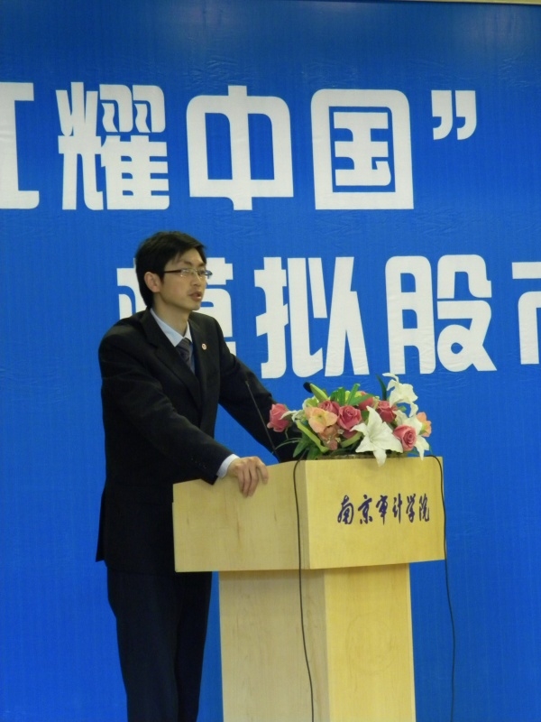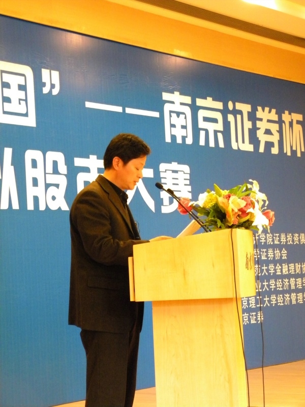 南京证券公司总经理助理王毅先生作为协作方及赞助方致辞,希望大学生树立正确的投资观念,并愿意深化与南审的合作,为社会输送更多的金融人才。证券投资俱乐部指导老师王家华博士建议同学要多关注时政热点,多阅读金融类报刊,将实践和理论联系起来学习。
