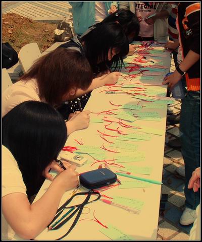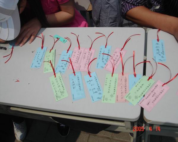 分团委的精心准备以及广大同学的积极配合下,六百来张书签在一小时内全部飘向学校的各个院系,也把文明传遍了南审校园。