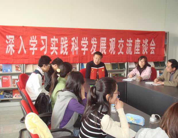 分团委书记孙静和辅导员周喜林结合自身工作经历教导全体党员同学要从小事做起,形成良好的学习、生活习惯,实事求是,与时俱进,努力践行科学发展观,做到活学活用。