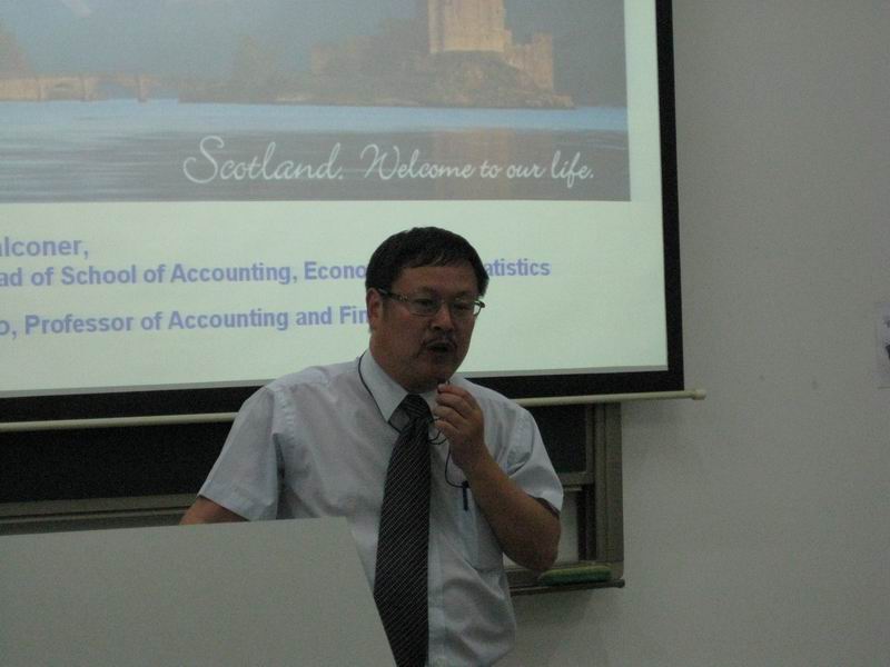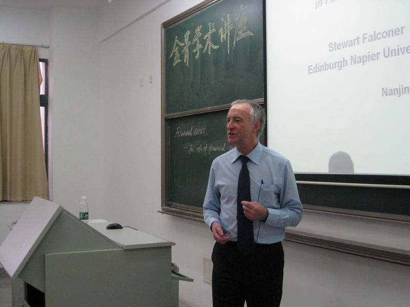 | Financial crisis ―The role of financial services education 6月4日晚上,英国爱丁堡龙比亚大学Stewart Falconer教授、高善生教授来到南审,在敏达楼301教室为司机会所 的同学们就金融危机下的金融服务业进行了一场气氛热烈的讲座与互动。 Stewart Falconer教授首先以一段精彩诙谐的开场白引出了全场讲座的主题,他从对金融服务业的介绍、现状、信用和专业化的重要性以及金融服务业的积极作用四方面系统地阐述分析了自己的观点与看法。同学们也十分踊跃地与教授进行互动,用流利的英文向他提出自己的疑问,Stewart Falconer教授一一做了解答。 最后,高善生教授向同学们介绍了爱丁堡龙比亚大学的相关情况并热情地邀请同学们赴爱丁堡留学。汪祖杰院长也做了简短的讲座总结。在同学们热烈的掌声中,这次讲座圆满结束。讲座结束后,Stewart Falconer教授又与一部分同学进行了面对面的交流,他的讲述让同学们印象深刻,受益匪浅。