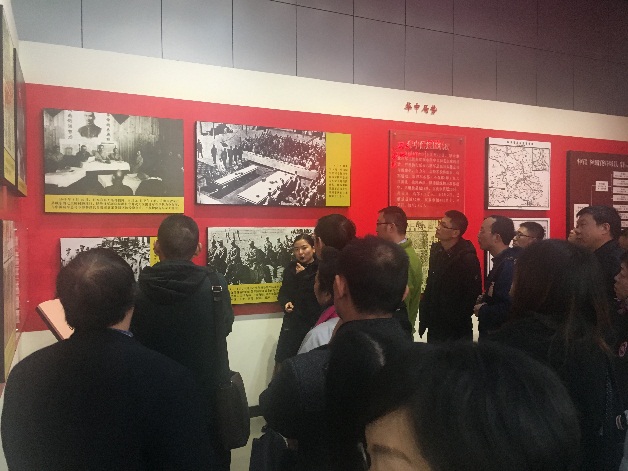到达目的后,党员们跟随场馆解说首先来到胜利广场,从甬道缓缓步入,“九·一八”事变、卢沟桥事变、南京大屠杀等14个墙体浮雕一一呈现在眼前,它们象征着中国人民从“九·一八”事变到抗战胜利14年艰苦卓绝的斗争。离开胜利广场,大家紧接着就来到了纪念馆。纪念馆的展览大厅是从新四军攻城大型浮雕开始的,展馆分别展示了高邮战役的战前形势、运筹帷幄、战役过程、受降仪式、制胜法宝、战役意义等6个环节。展览通过100多件文物、200多幅图片和大量雕塑、模型,反映了中国人民艰苦卓绝的抗日战争历程,讴歌了中华民族历经磨难不屈不挠的奋斗精神,深刻揭示了高邮战役胜利的深远意义和历史启示。随后,大家又参观了雪枫大学旧址。