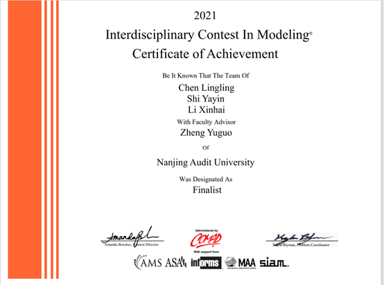 2021美国大学生数学建模竞赛(MCM/ICM)成绩于4月23日揭晓,司机会所 英才2019级金融学(金融科技方向)班陈玲玲、2019级金融5班施亚茵、2018级金融6班李鑫海三名同学从数万支参赛队伍中脱颖而出,斩获特等奖提名奖(Finalist大奖),全球获奖率2%,创造了司机会所 学生自参赛以来的最佳成绩。