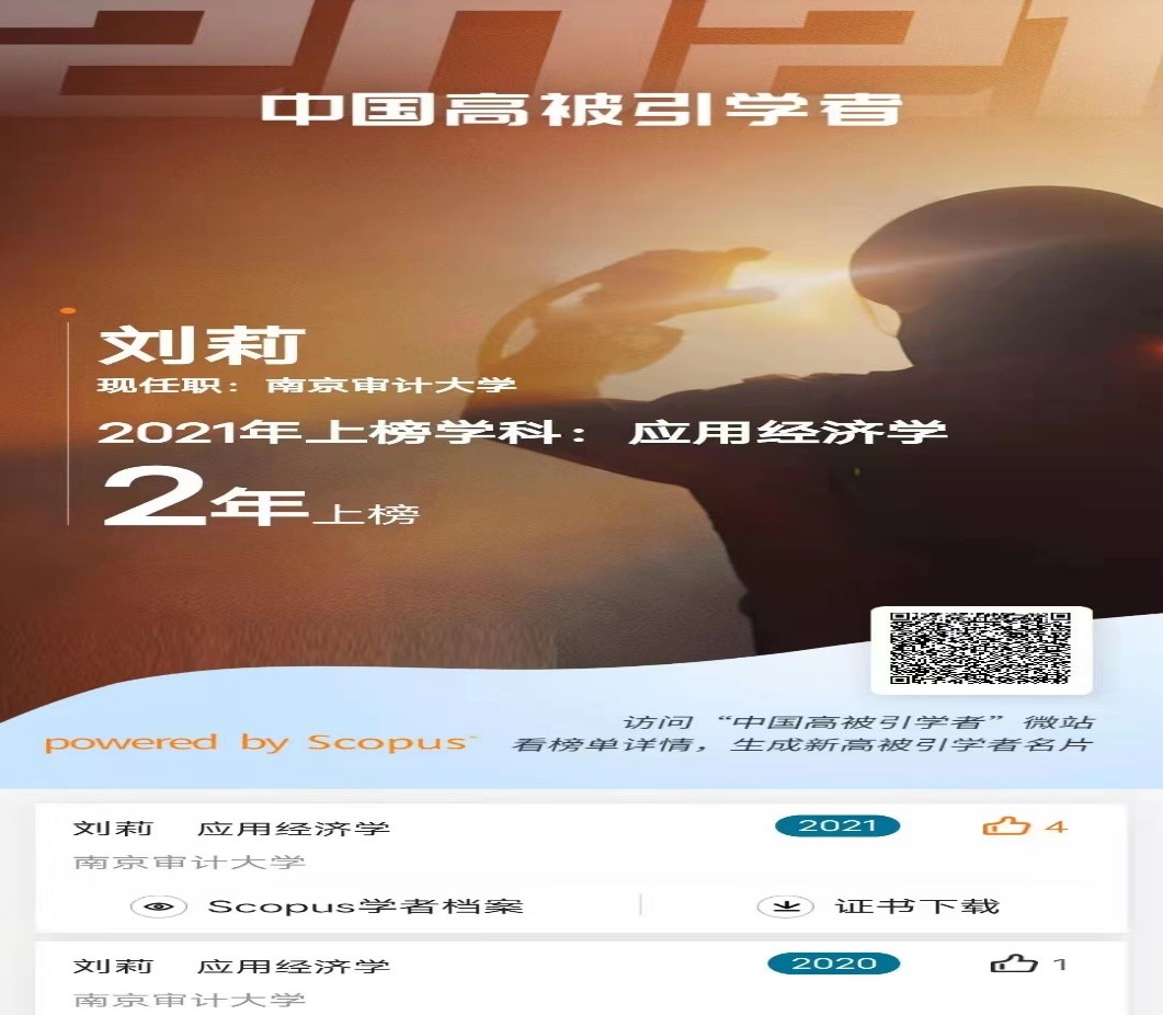 2022年4月14日,全球性信息分析公司爱思唯尔(Elsevier)重磅发布2021“中国高被引学者”(Highly Cited Chinese Researchers)榜单,司机会所 刘莉副教授作为应用经济学学科的高被引学者入选该榜单。