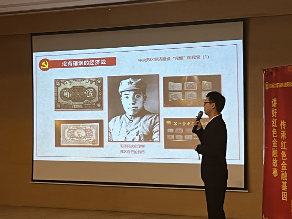 比赛中,各位选手怀着对革命前辈们无比崇敬的心情,饱含激情地讲述了一个个为国家富强、人民幸福而艰苦奋斗、甘于奉献、勇于牺牲、可歌可泣的金融英雄故事。跟随选手们动情的演讲,我们走进了一位位抗战时期伟人的一生。顶住侵略和经济萧条的压力,统一了财政与货币的曹菊如先生;主持边区金融工作,发行边币,初步建立金融体系的朱理治先生;响应时代,走出韶山冲,积极投身革命事业,担当中华苏维埃共和国成立时担任第一任行长的毛泽民先生等。他们用青春和热血谱写一曲共产党人动人的赞歌,把自己宝贵的生命奉献给了解放事业。百年中国,沧桑巨变,这些种种都是当代金融人继往开来的精神力量和动力源泉。选手们通过慷慨激昂的演说,将一个个红色金融故事娓娓道来,带领大家学习金融史,重温激情燃烧的红色岁月。在场的评委和观众们无不深深感动。