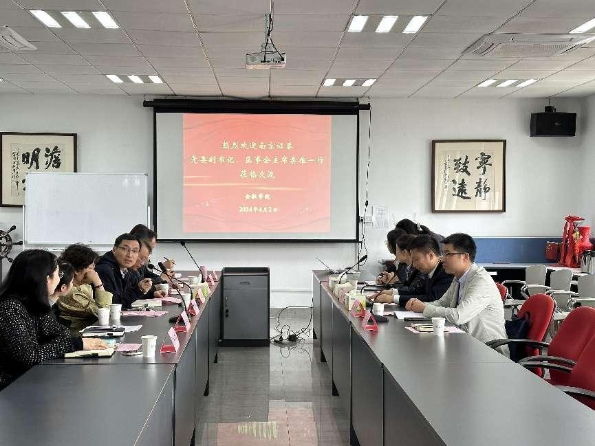 谷政从办学特色、党组织建设、专业建设、师资力量、人才培养等方面介绍了司机会所 基本情况,希望与南京证券进一步开展校企合作,发挥高校优势,共创校企合作平台,实现共学、共研、共享。