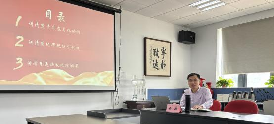 在“讲清楚青年容易犯的错”模块,谷书记总结了青年干部违法违纪案例常见的“错误类型”,结合实际深刻剖析了若干违纪典型案例,并指出青年唯有扣紧廉洁的第一粒“扣子”才能行稳致远。在“讲清楚纪律规矩划的线”模块,谷政书记紧扣政治纪律、组织纪律、廉洁纪律、群众纪律、工作纪律、生活纪律六项纪律,联系岗位职责和工作实际对青年党员进行纪律教育。在“讲清楚违法乱纪酿的果”模块,谷书记介绍了《条例》中对党员的五种纪律处分的规定,并指出青年党员同志要认真遵守纪律,解决“不上心、不了解、不掌握”的突出问题,做到学纪、知纪、明纪、守纪,以一心为公、一身正气,激荡“功成不必在我,功成必定有我”的赶考精气神,让青春在党纪学习教育中绽放光彩!