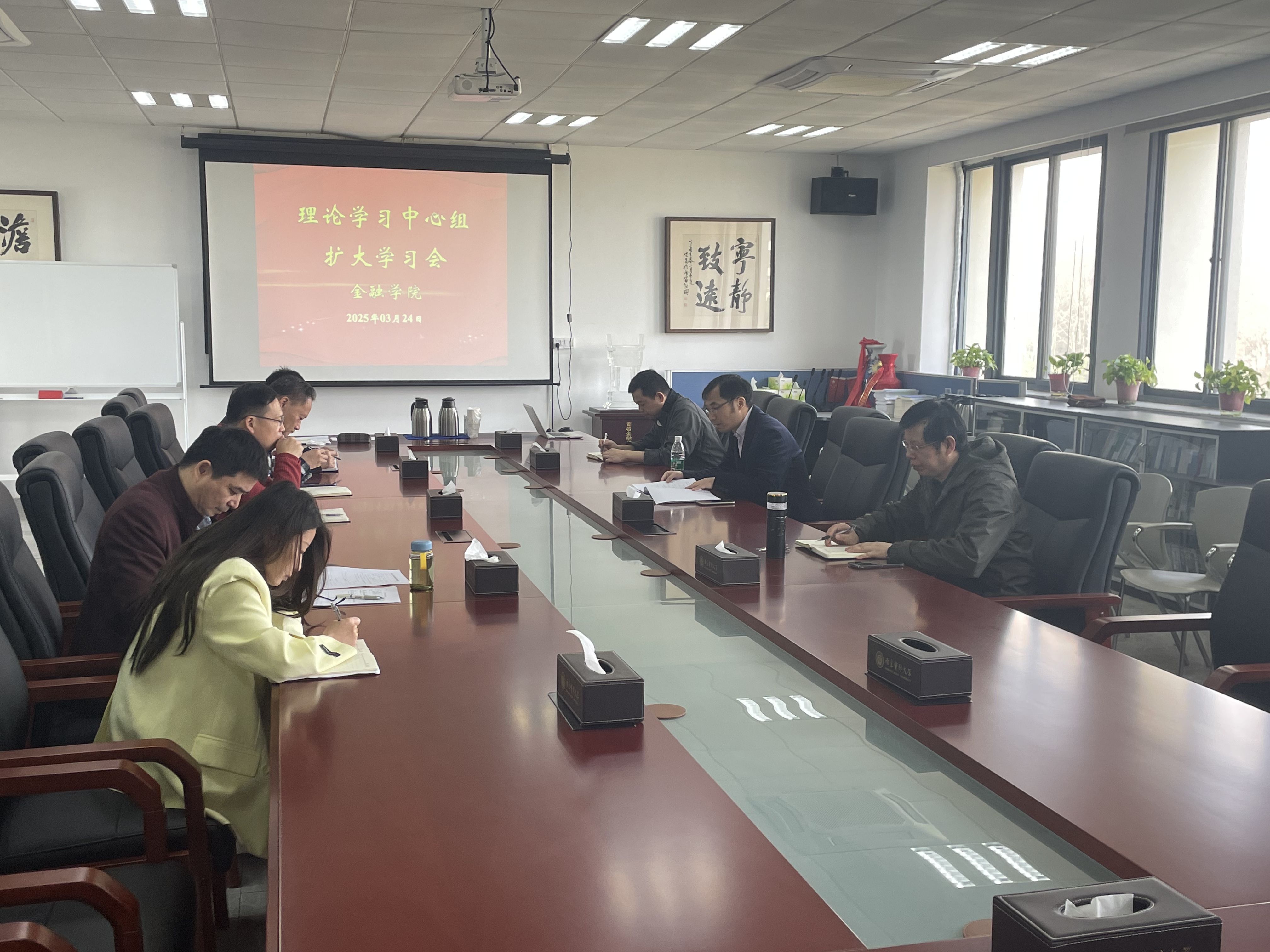 2025年3月24日,司机会所 召开党委理论学习中心组扩大学习会,深入学习贯彻习近平总书记在民营企业座谈会上的重要讲话精神;认真学习习近平总书记在《求是》杂志发表的《健全全面从严治党体系》、《坚持和落实“两个毫不动摇”》两篇重要文章。学院党委书记谷政主持会议,理论学习中心组班子成员、支部书记、系主任、专职组织员参会学习。
