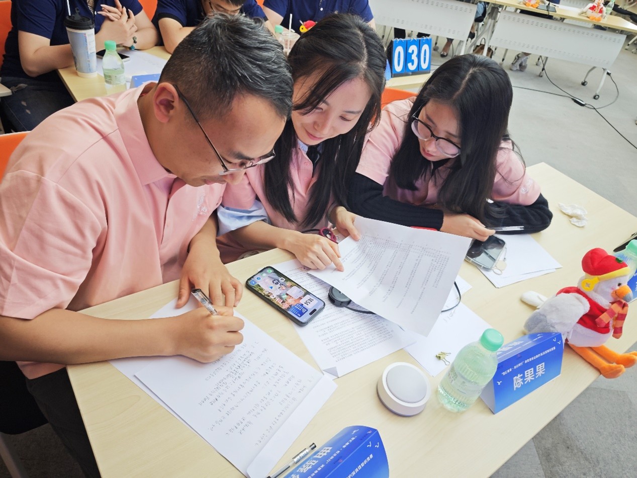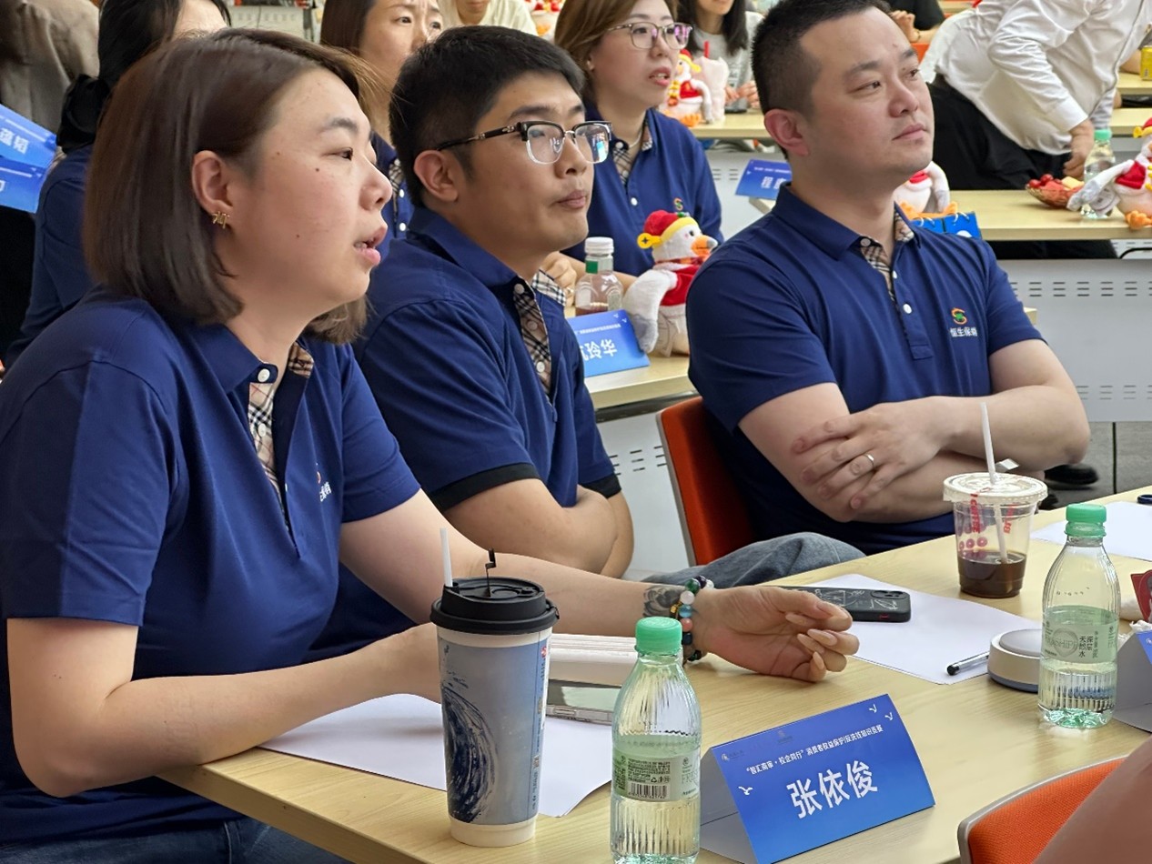 在主持人介绍完比赛流程、丰厚奖品,以及“快乐寻宝”“冠军竞猜”等福利活动后,竞赛正式拉开帷幕。必答题环节,选手们冷静思考、从容作答;抢答题环节,大家眼疾手快,凭借扎实知识迅速抢答;案例分析题环节,各小组深入讨论,代表陈述逻辑严谨、专业全面;风险挑战题环节,选手们勇敢抉择,向高分发起冲击。各环节扣人心弦,现场高潮迭起。