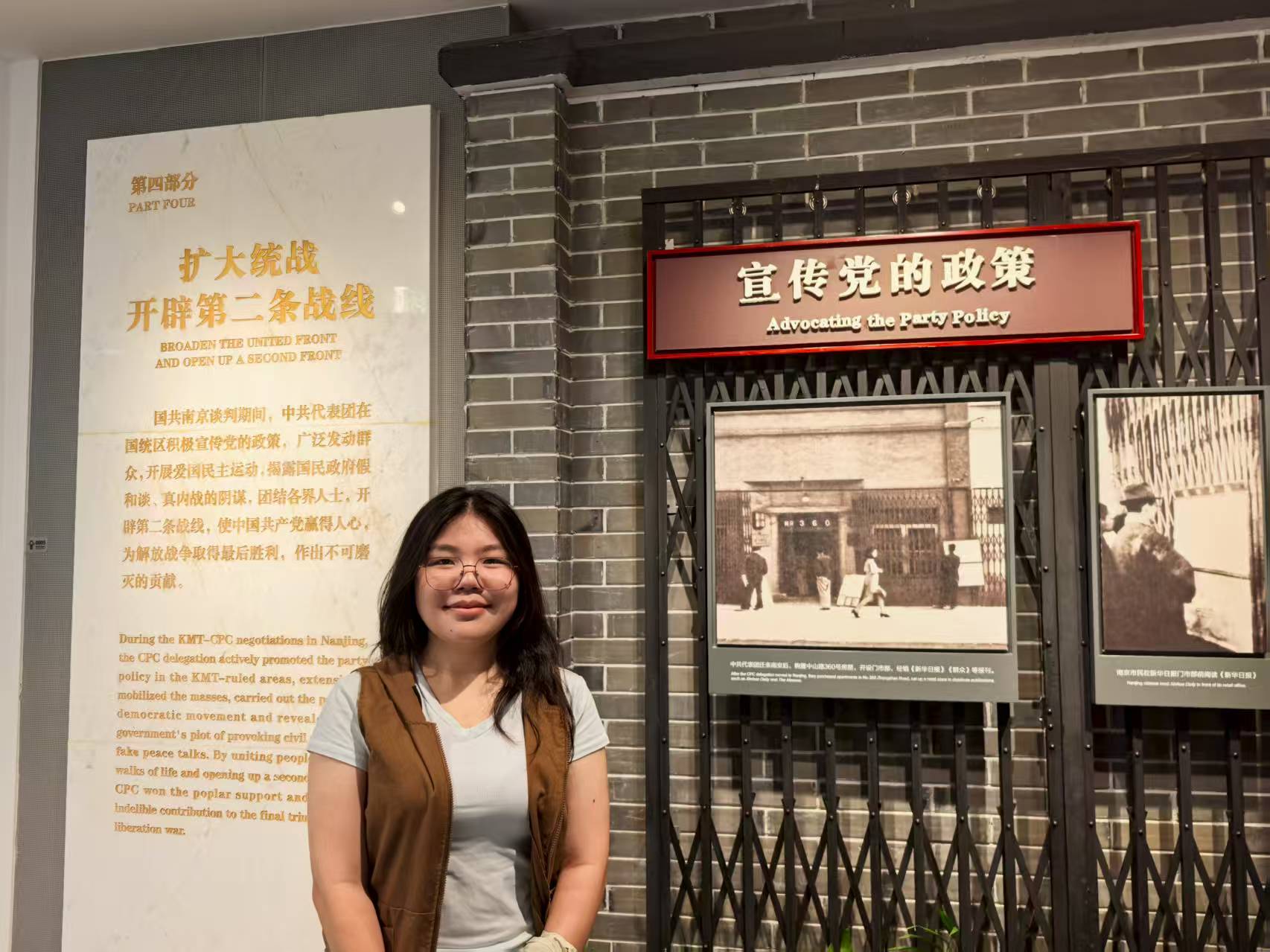 7月19日至20日,成员们参观了中共代表团梅园旧居。梅园新村30号、35号和17号,这些看似普通的民国建筑,曾是国共谈判的重要阵地。周恩来居住的30号,屋内陈设简单朴素,一张床、一张书桌、几把椅子,却见证了无数次重要决策的诞生。旧居的墙壁上至今还保留着当年为防止特务监视而加高的痕迹,每一处细节都诉说着那段惊心动魄的历史。同学们站在旧居中,仿佛能看到周恩来等中共代表团成员日夜忙碌的身影,听到他们为争取和平、反对内战而进行激烈辩论的声音。