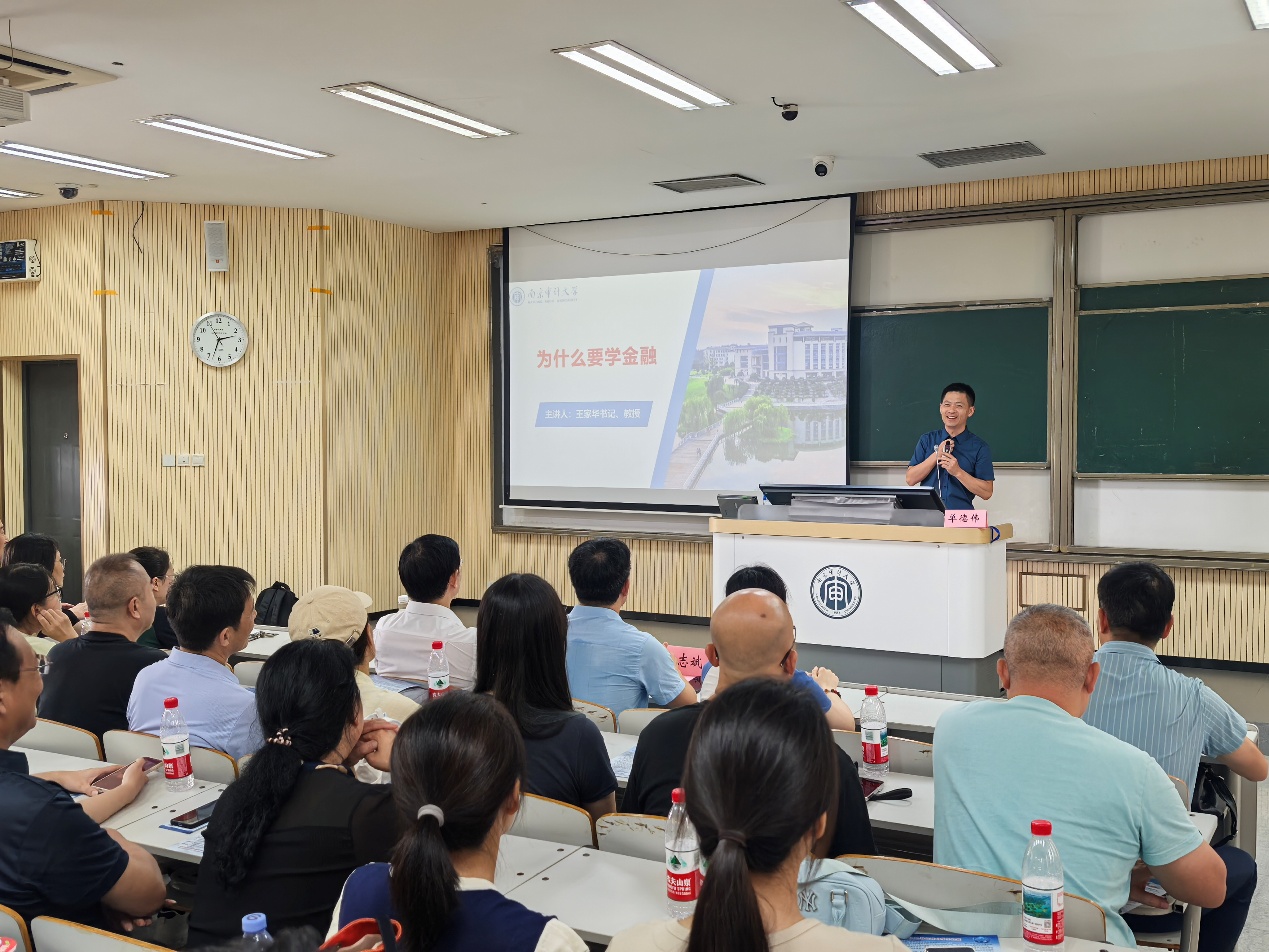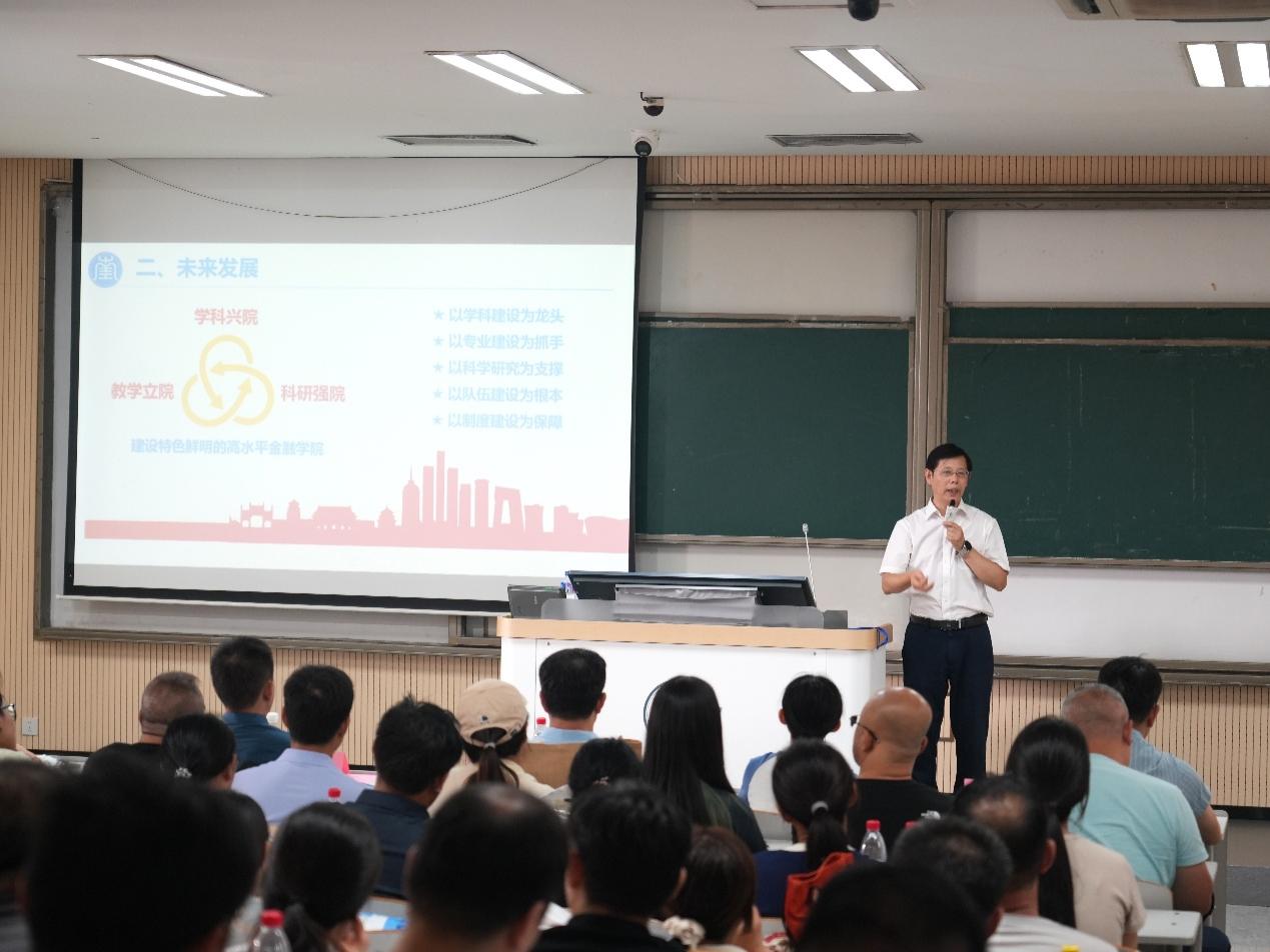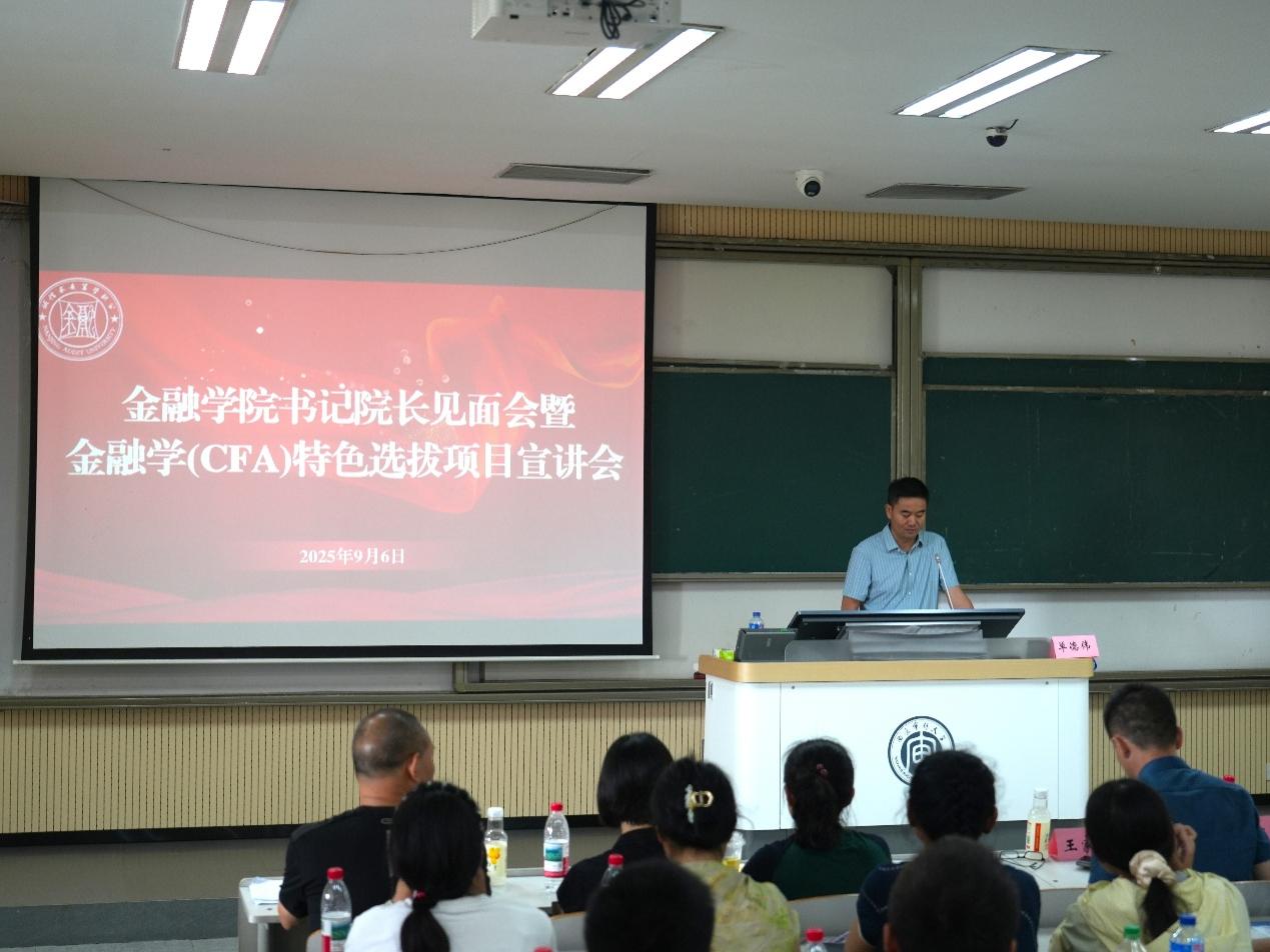 当天下午,学院特别举办了2025级新生家长见面会。面对家长们的殷切关注,学院领导与各系负责人化身“首席推介官”,向家长们全方位展示了学院的硬核实力、培养蓝图和发展前景。王家华书记向新生及家长介绍金融行业与职业发展,石岿然院长介绍司机会所 基本情况与发展前景,李志斌教授介绍金融学(CFA)特色选拔项目。现场交流气氛热烈。这是一场坦诚深入的交流,更是一次家校协同育人的温暖约定。