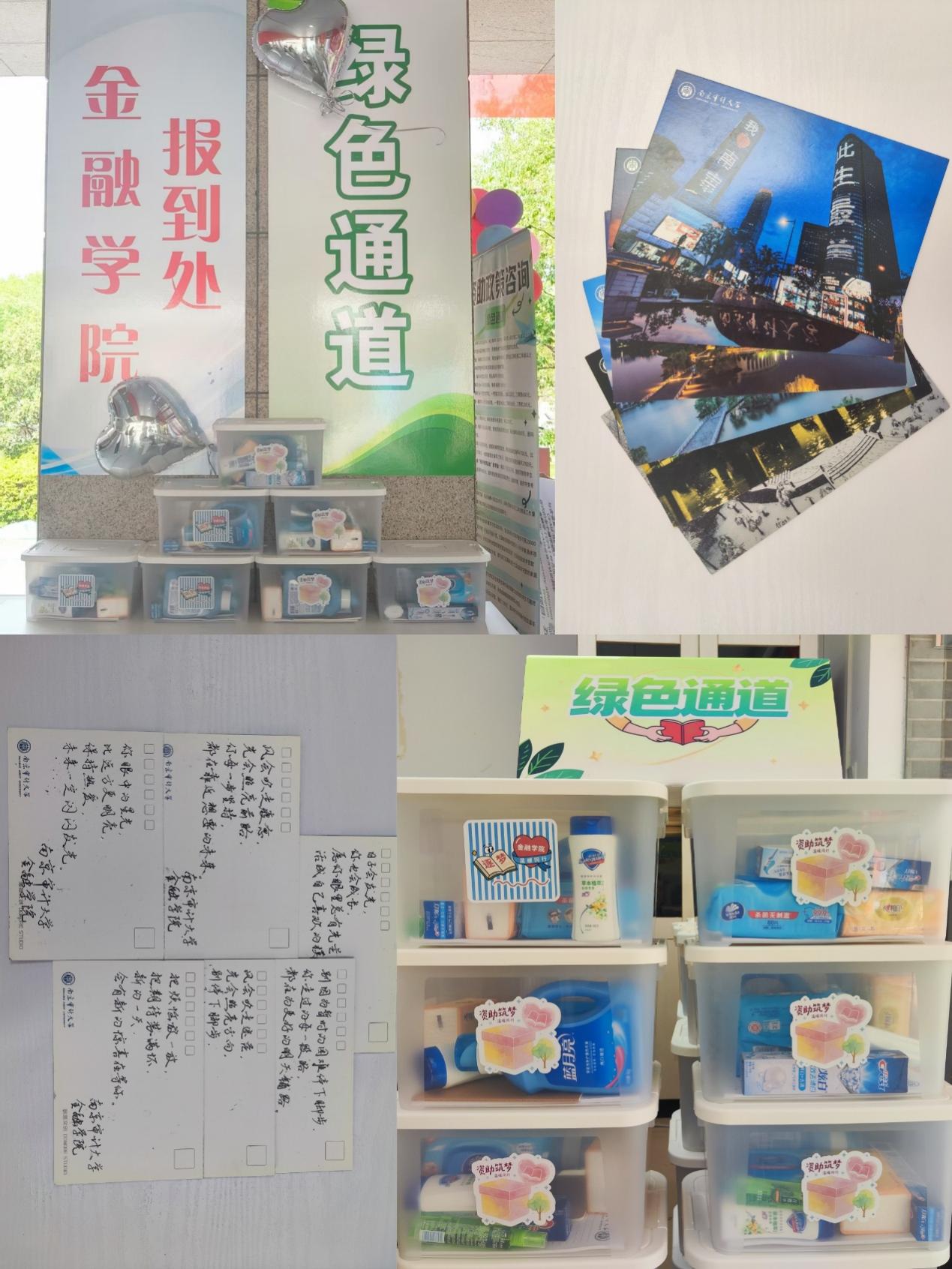 绿色通道,同样暖心“解锁”。我们为通过绿色通道报到的新生准备了超实用的“爱心大礼包”,还有学长学姐亲手写满祝福的明信片,每一份心意都贴心满满,帮你轻松开启校园新生活!我们希望,从你踏入南审的那一刻起,归属感,就已悄然生长。