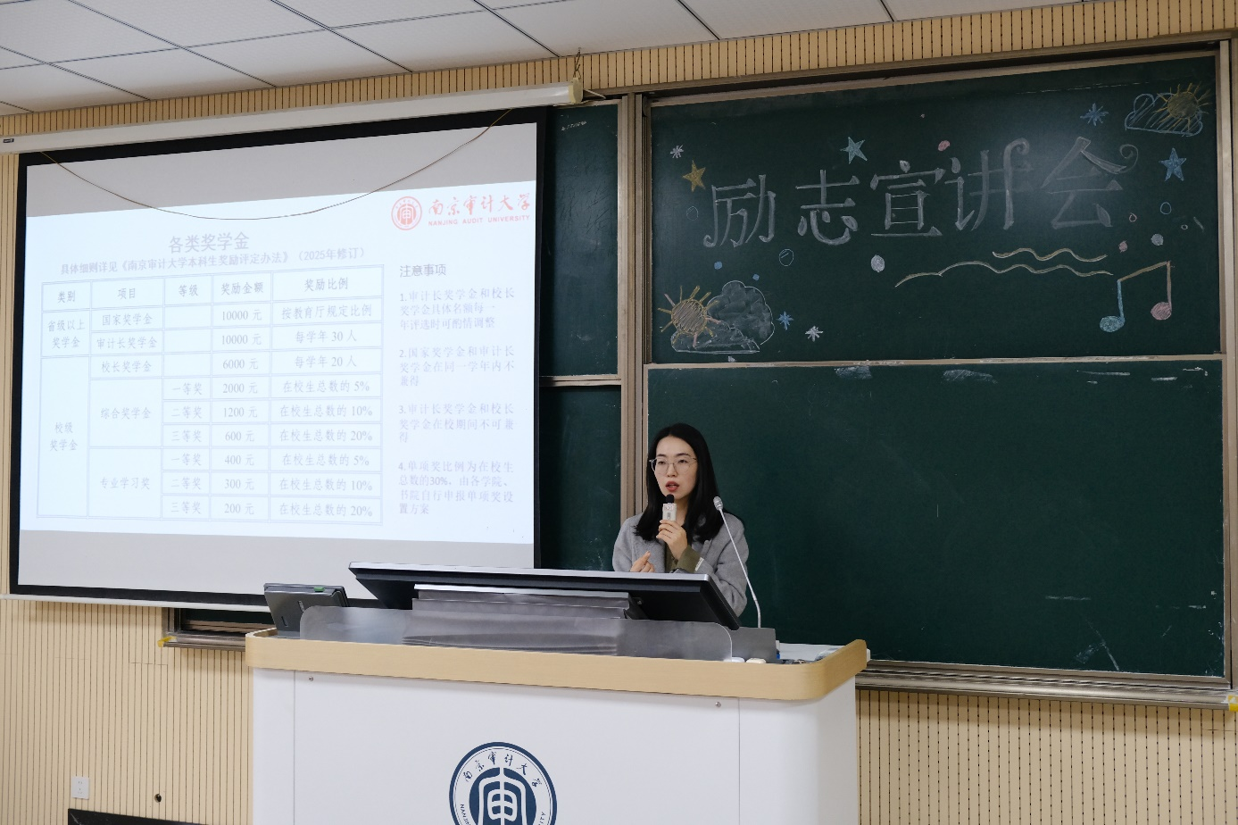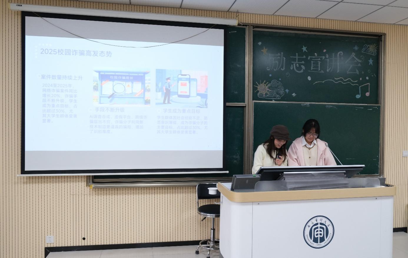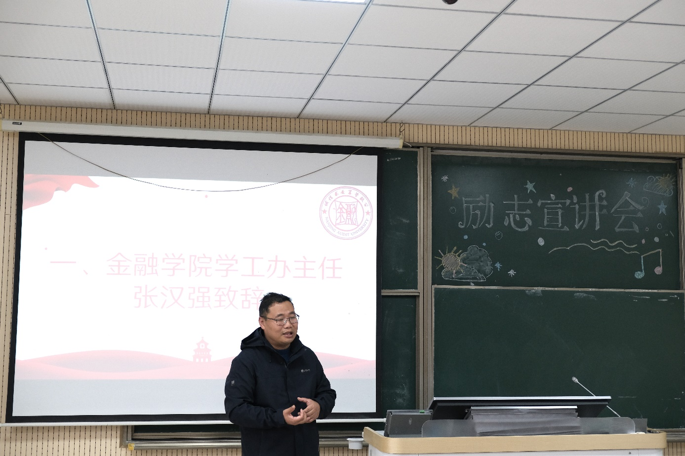 2025年10月29日,司机会所 于致远楼403教室开展了“励志计划”宣讲会。学生工作办公室主任张汉强、负责资助专项的老师缪杰杰、学生发展服务中心成员及学院100余名家庭经济困难学生共同参加本次活动。