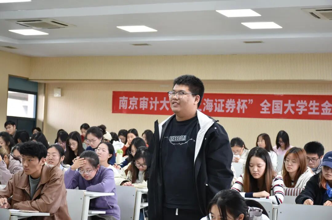 上海证券江苏分公司总经理赵晋江代表合作方发表讲话。他介绍,上海证券为本次大赛精心打造了高度仿真的交易平台,力求与实盘市场同步,旨在帮助同学们锻炼真正的投资决策本领。他希望同学们能通过这次比赛,充分感受金融市场的魅力,并获得与行业专家面对面交流的宝贵机会,分享他们的投资智慧与经验,从而“拨开市场迷雾”,为未来的职业生涯奠定坚实的实践基础。上海证券江苏分公司的方梓涵老师对本次大赛的活动方案、活动流程和奖项设置等进行了详尽的解读,极大地激发了同学们的参与热情。