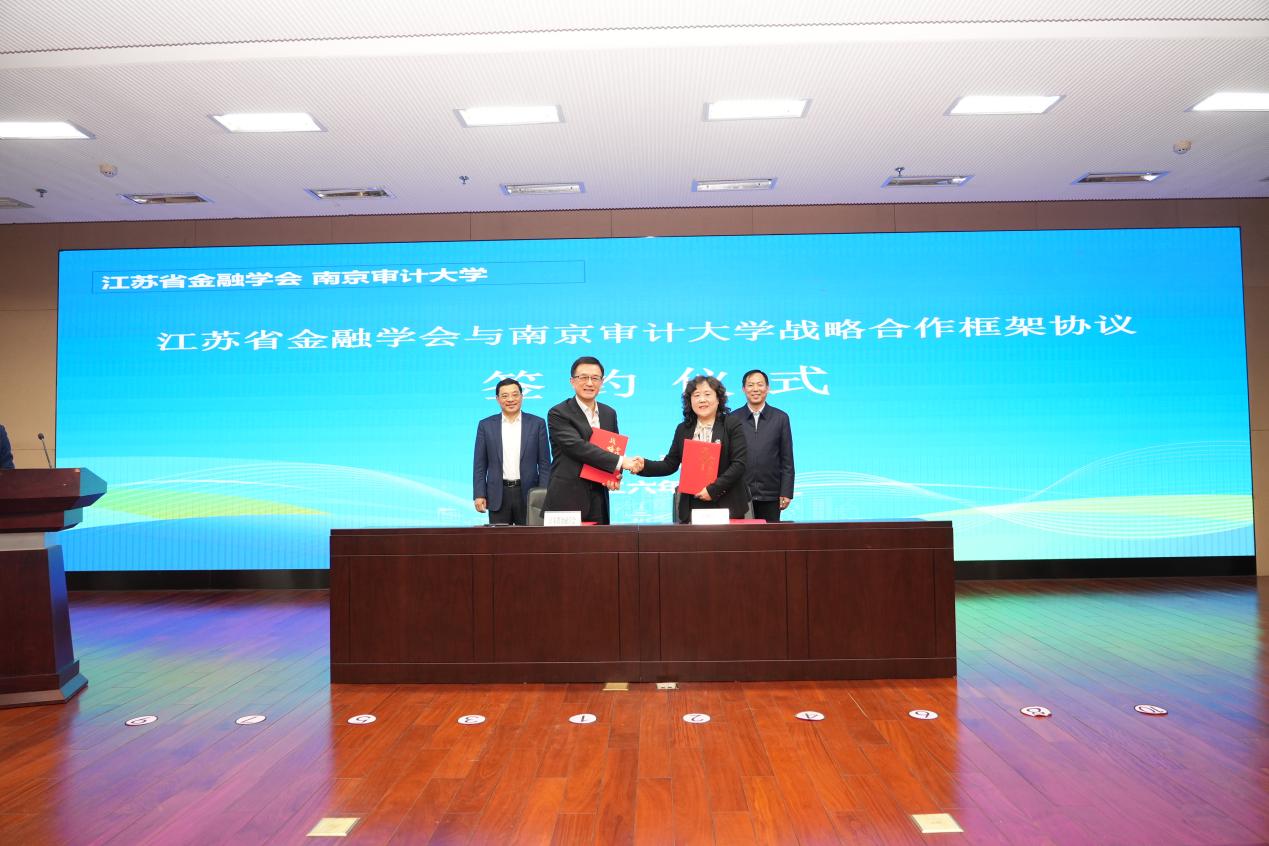 成立大会上,江苏省金融学会与司机会所 签署了战略合作框架协议。双方将以服务江苏金融强省建设为目标,围绕科研与学科建设、人才培养与评价、平台建设与学术交流、实践与人才交流四方面深化合作,为专业委员会后续发展奠定坚实基础。
